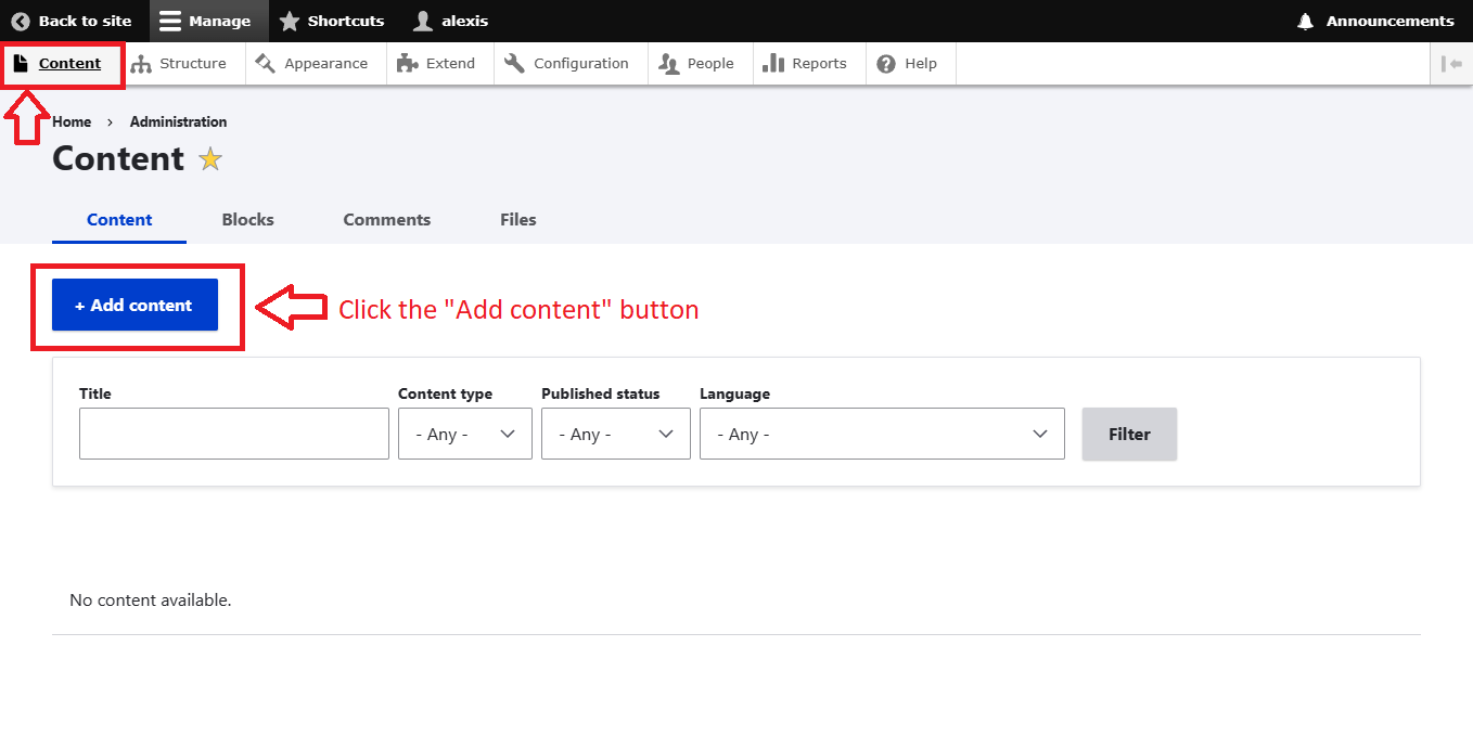 - And click on the button: "Add content".